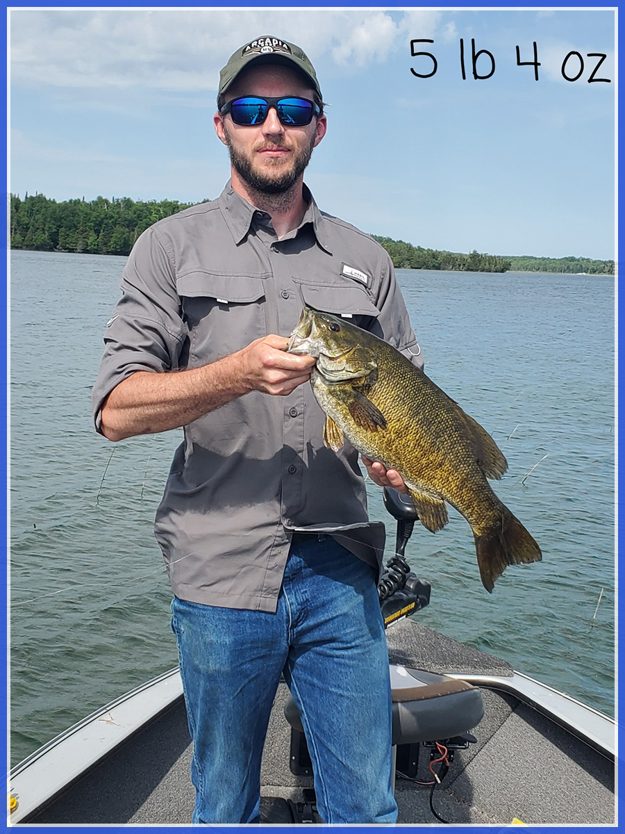 Prime Bass fishing is from late May through the end of June. During this time guests will be working pre-spawn, spawn and post-spawn fishing. Pre and Post-Spawn the Bass will hang in 5 - 10 ft of water near steep drop-offs. Live bait, primarily worms & leeches, along with simple plastics and lures like rapelas and spinners work well. Post Spawn is where we see the most action! While the Bass are spawning they will not feed, this means they are ravenous once their eggs are laid. On average the Bass spawn at a water temp of 65-68 degrees. The second week of June is when we typically start to see the Bass spawn out and move off their beds and begin feeding. Depending on the weather this can take a few days up to a couple of weeks. The wonderful part about June fishing is that during each of these 3 phases catching Bass is the easiest we see all year.