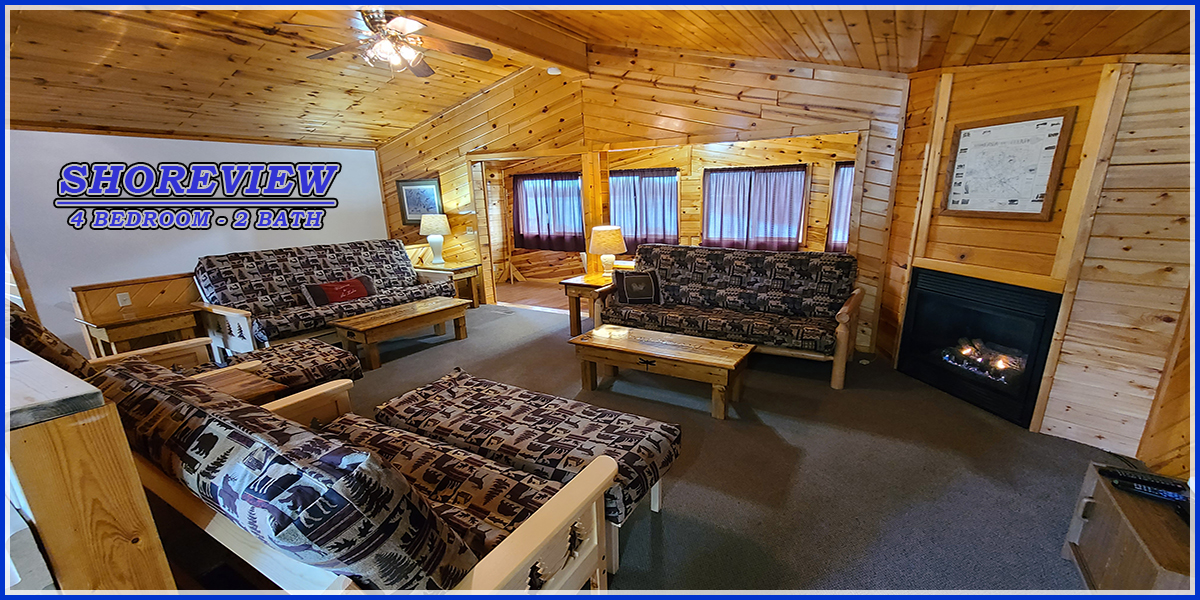 6 Bedroom Lunker Lodge ~ 6 Bedroom Aspen ~ 4 Bedroom Shoreview ~ 4 Bedroom Moosebay ~ 2 Bedroom Rustic Lodge ~ 2 Bedroom Blue Jay